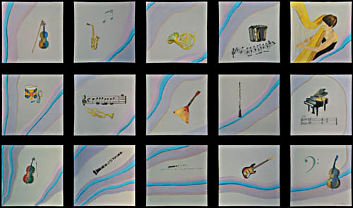 Galleria / Musiikkiaiheita / Fanfaari , 15 maalausta-sarja 190x250,