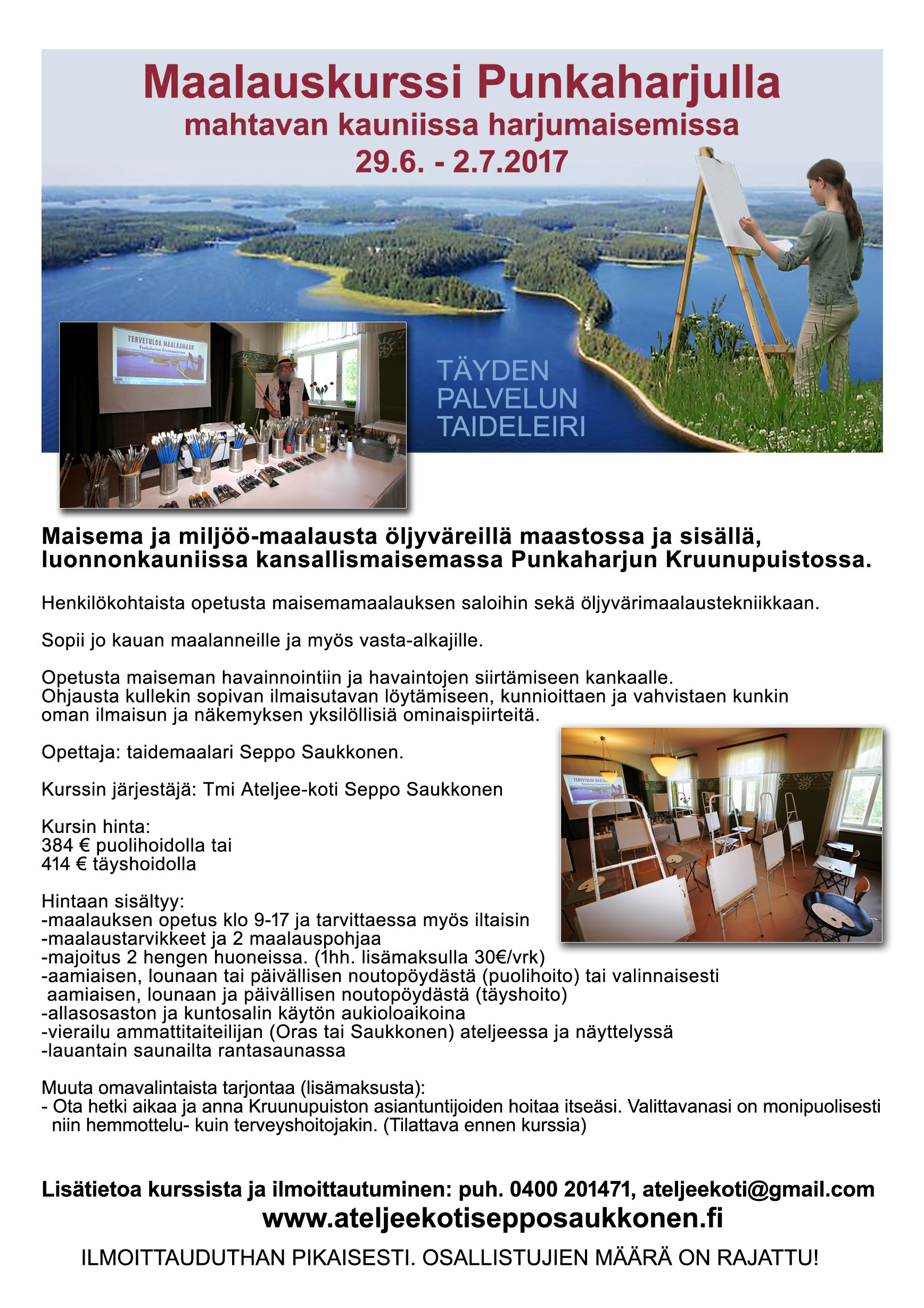 Maalauskurssi Punkaharjun kauniissa harjumaisemissa 29.6. - 2.7.2017